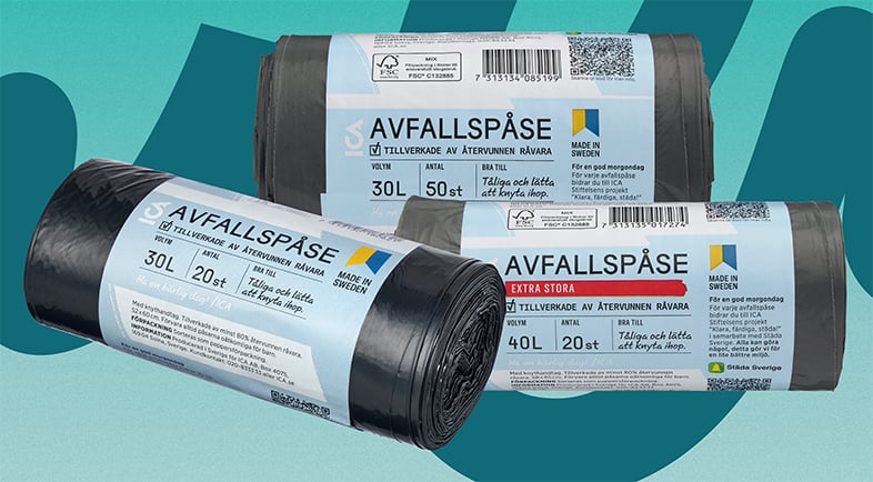 ICAs avfallspåsar är tillverkade av återvunna råvaror.
